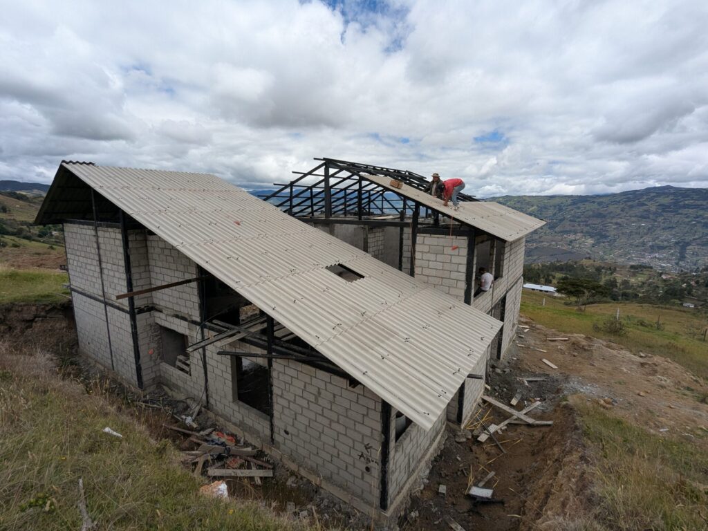 As for the house? Almost all of the concrete block has been installed; it is only lacking in a few of the vaulted areas. The workers have continued installing enlucido upstairs as well as putting the finishing touches on the corners downstairs, which really helps clean up the look of the rooms. And, we now have a roof! The corrugated fibre cement roofing is going up quickly.