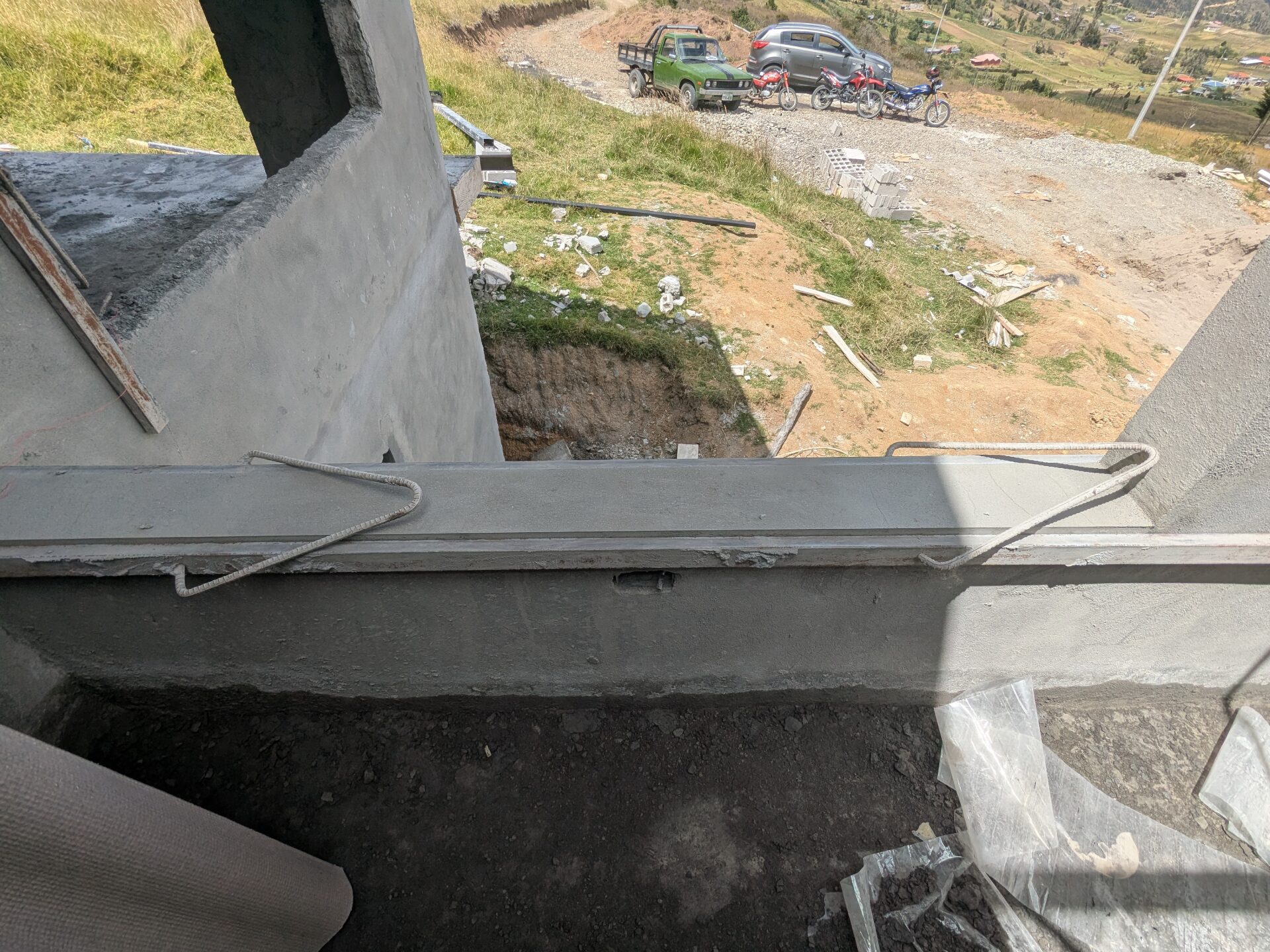 While the finishing work on enlucido involves sanding, priming, and painting, the current task is to install clean edges along every corner, window, and doorway of the house. This is achieved with a simple jig made from straight metal tubing and a bit of bent rebar.