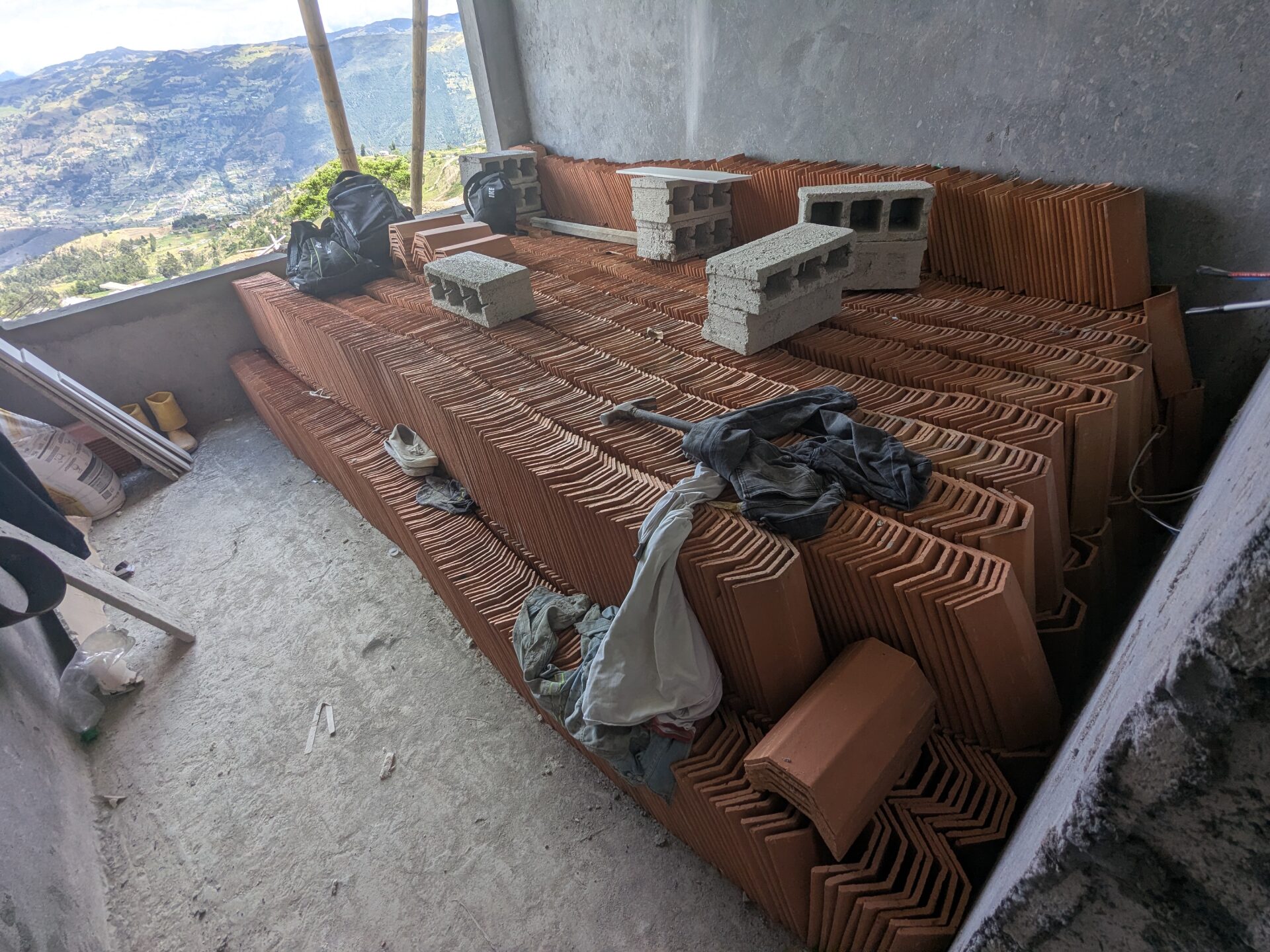 The roofing tiles are here! All 4700 of them. As they only serve a decorative purpose it will probably be some time still before they are installed. But, when that time comes, they will form a distinctive design feature of the house; something Andrea and I have only ever seen on one other home in Ecuador. Stay tuned for that update. For now, the tiles are safely stored in my mom’s bedroom.